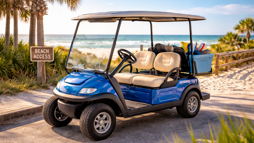 A golf cart isn’t just transportation — it enhances the laid-back beach experience.